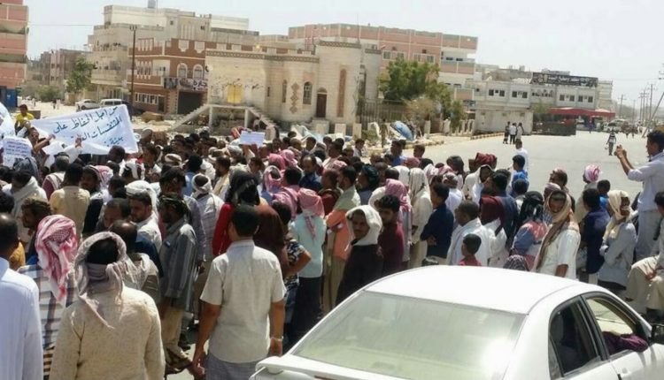 نظم سكان احياء منطقة فوة في مدينة المكلا وقفة احتجاجية غاضبة في ساحة حديقة المستقبل بحي المتضررين للمطالبة بايقاف إجراءات هيئة العقار التابعة لسلطات موالية للإمارات ببيع وتمليك مساحة متنفس عام لمستثمر .