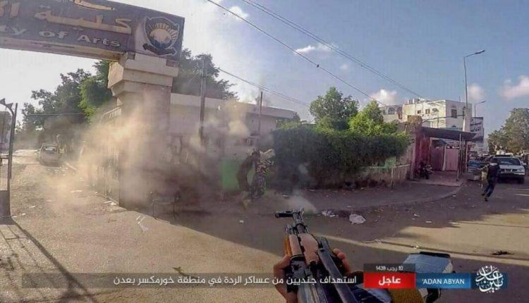 داعش تحاول إقتحام كلية الآداب في عدن وتؤكد إصابة أحد عناصرها الارهابية