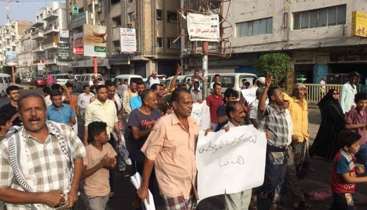 عدن .. مظاهرة غاضبة في المعلا تندد بتجاهل حكومة هادي لأوضاع المواطنين المعيشية