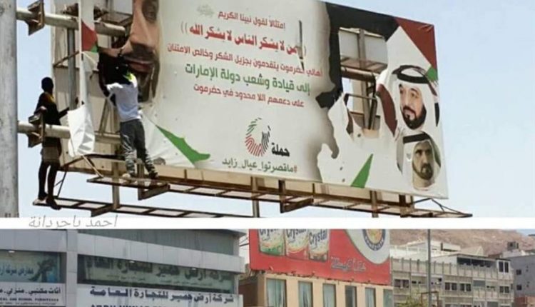 الجنوب اليوم الذي فرضت الإمارات علية اجندتها بالقوة، ورفعت شعارات الشكر والتقدير لأولاد زايد في واجهات الشوارع التي تعيش منذ سنوات في ظلام دامس والتي تحولت إلى ساحات حرب بين مليشيات حزب الإصلاح والإمارات ، ينتفض لتسقط موجة السخط عبارات الشكر المفروضة قسراً على أبناء الجنوب ، فموجة الغضب التي أحرقت الإطارات التالفة في شوارع عدن والضالع ولحج وعتق المكلا والقطن وسيئون وقطعت الشوارع تحرق اليوم لوحات الشكر التي منحتها الإمارات لنفسها في عدن والمكلا ، فصور أولاد زايد المعلقة على واجهات الشوارع اسقطت واصبح أبن الجنوب يدوسها بقدمة ليدرك أولاد زايد أن بقائهم في الجنوب مستحيل وان طردهم لن يكون كما حدث اثناء دخول عدن تحت ذريعة إعادة الشرعية ، بل سيطردون كما طرد المحتل البريطاني في ستينات القرن الماضي مدحوراً مدلولا .
