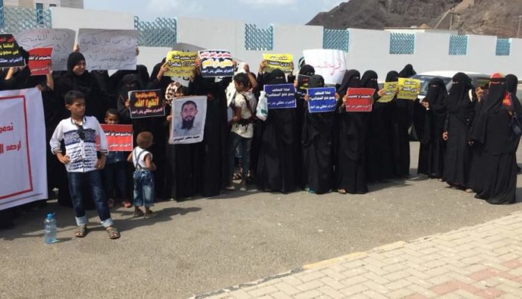 نظمت العشرات من أمهات المعتقلين في سجن بئر أحمد بمدينة عدن أحد المعتقلات السرية التابعة للإمارات اليوم الأحد وقفة احتجاجية أمام منزل أحمد الميسري – نائب رئيس الوزراء وزير الداخلية في حكومة هادي للتنديد بأعمال الإخفاء القسري.