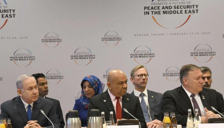 أثار ظهور وزير خارجية «الشرعية»، خالد اليماني، إلى جانب رئيس الحكومة الإسرائيلية بنيامين نتنياهو، في «مؤتمر وارسو» الذي عقد الأربعاء في بولندا، ردود أفعال رسمية وشعبية ساخطة وغاضبة، فتوسط اليماني بين نتنياهو وبومبيو في المؤتمر الذي دعت إليه أمريكا لتشكيل تحالف ضد إيران، اعتبرته أحزاب ومكونات سياسية واجتماعية يمنية «خطوة في طريق التطبيع الكامل بين تلك الحكومة التي تقيم في الرياض منذ أربع سنوات وإسرائيل العدو الأول للأمة العربية والإسلامية وخيانة وطنية وتحدى لإرادة الشعب اليمني المساند للقضية الفلسطينية».