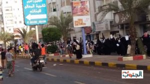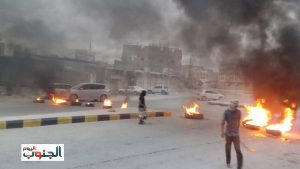 حيث ردد المحتجون اليوم الاربعاء هتافات مناهضة للتحالف كما قاموا بإحراق الأعلام الاماراتية وصور قادة الامارات من عدد من شوارع المدينة ، يضاف إلى قيام المحتجين بقطع عدد من الشوارع الرئيسية في البريقة والمعلا والتواهي والشيخ عثمان
