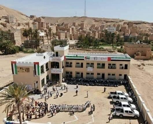 يوم أمس، تداول نشطاء على مواقع التواصل صورة لافتتاح الإمارات ثانوية بمحافظة شبوة أسمتها “ثانوية الإمارات” خلت من كل ما يدل على أنها في محافظة يمنية حيث امتلأت واجهتها بالأعلام الإماراتية ورفع علمها على قصبة العلم اليمني بوسط ساحة الثانوية.