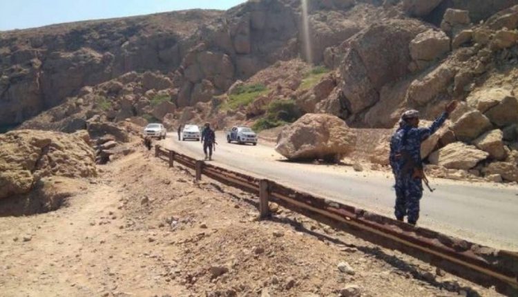 منتسبي محور عتق يقطع الخط العام الرابط بين مأرب وشبوة لليوم الثاني للمطالبة برواتبهم .