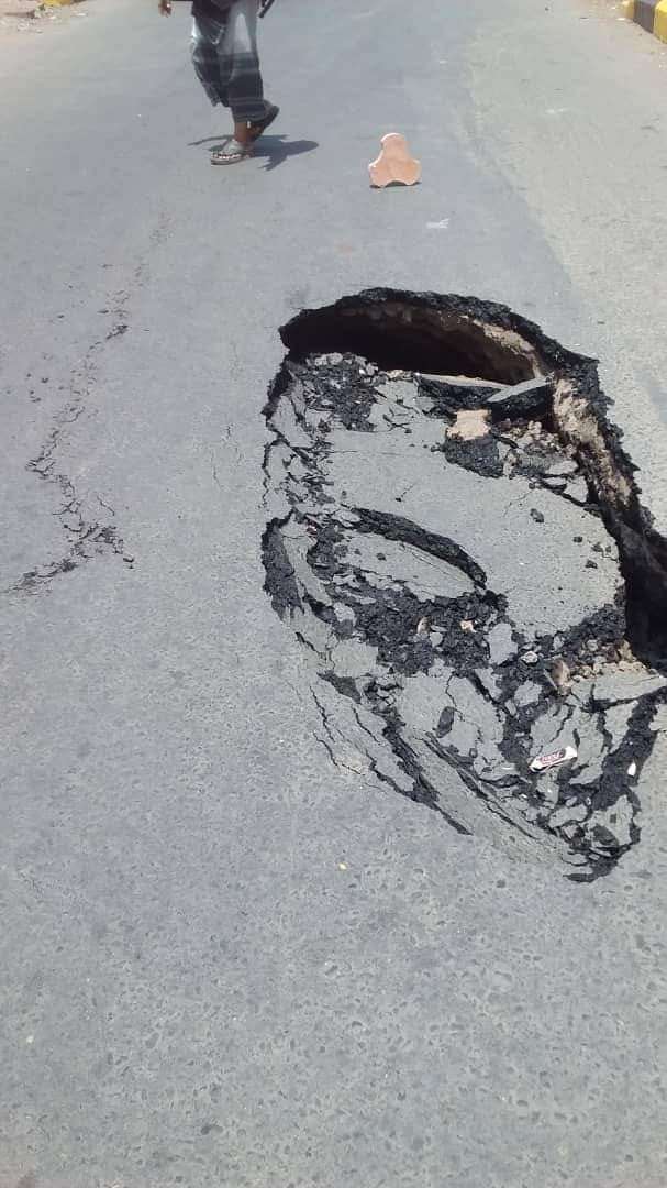 وقال المواطنون والسائقون أنهم تفاجئوا خلال دخولهم إلى قصر معاشيق بهبوط طبقة الإسفلت بشكل كامل.