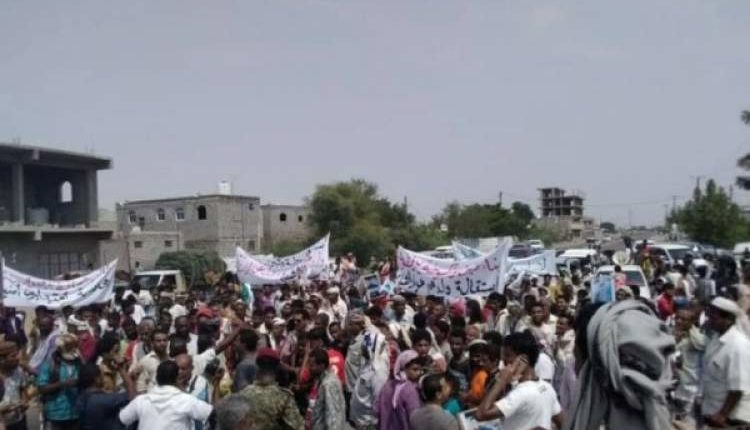 ونظم المئات من أهالي الحوطة ومديرية تبن، وقفات احتجاجية تطالب بخروج فصائل الإنتقالي الموالي للإمارات من مناطقهم.
