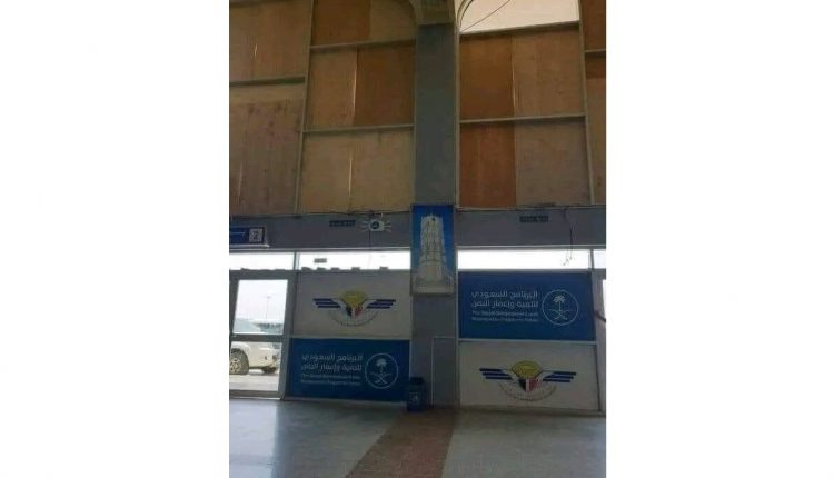 إدارة مطار عدن تغطي فضيحة آل جابر بألواح الأبلكش الخشبية بواجهة المطار