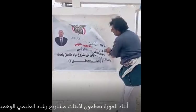 في السياق أيضاً قام مواطنون بتقطيع اللافتات التي تم تعليقها لتدشين مشاريع العليمي الوهمية والتي سبق أن تم إعلان تدشينها منذ سنوات من دون أن يتم تنفيذها بالفعل، حسب ما أظهره مقطع فيديو تداوله نشطاء بمواقع التواصل الاجتماعي اليوم يظهر تقطع لافتة مشروع مياه وهمي سبق أن تم إعلانه عدة مرات قبل سنوات من دون تنفيذه فعلياً.