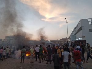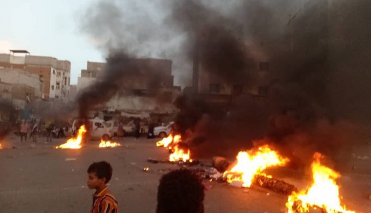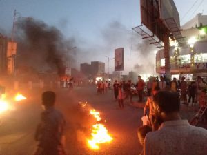 وقام المحتجون مساء اليوم الثلثاء بقطع الطرقات، وإحراق الإطارات، تنديدآ بتردي الاوضاع المعيشية. وانقطع الكهرباء.