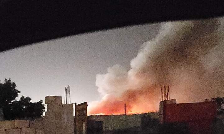 وقالت مصادر محلية إن الحريق التهم مستودعات في معسكر النصر سابقا.
