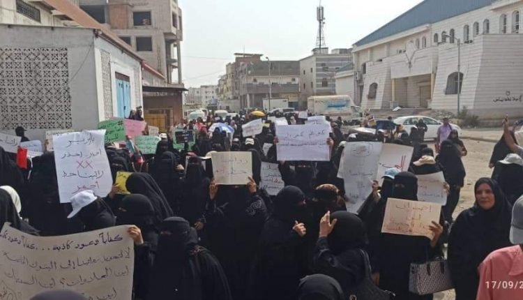 عدن.. احتجاجات واسعة للمعلمات والمعلمات ضد حكومة معين