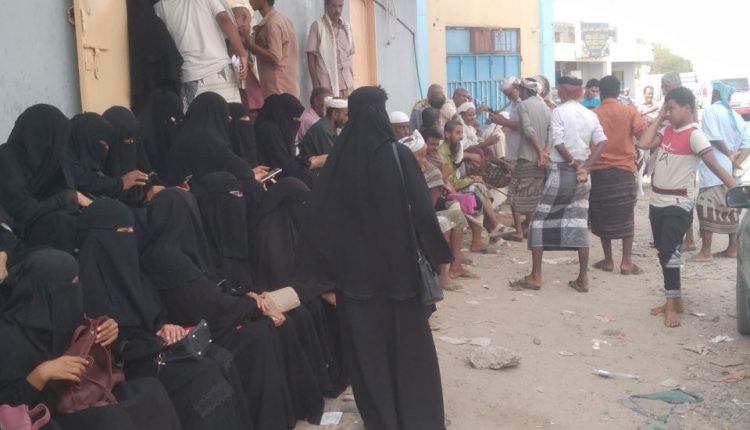 آلاف المعلمين يصطفون لساعات طويلة بانتظار المرتبات من شركات الصرافة بلحج