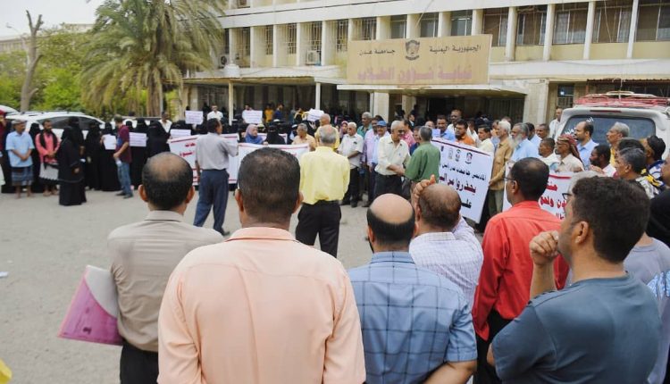 النقابات الأكاديمية والعمالية بجامعات عدن لحج أبين شبوة تواصل الاحتجاجات