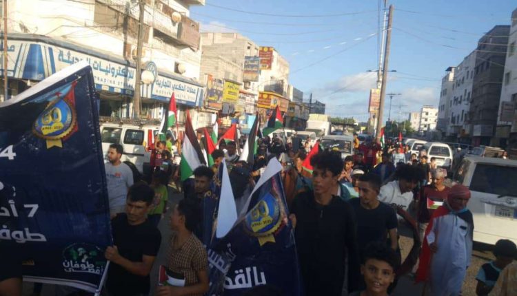 خروج شعبي مع الحراك الثوري الجنوبي في مظاهرة بعدن ضد المطبعين مع الكيان الإسرائيلي وتأييداً لفلسطين