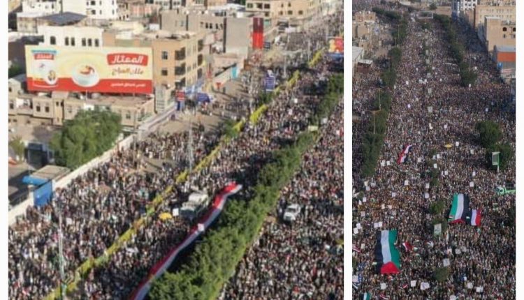 طوفان بشري في صنعاء من أجل فلسطين وتنديداً بجرائم الاحتلال