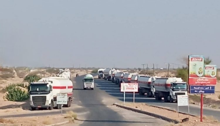 يواصل محافظ شبوة , عوض ابن الوزير احتجاز قاطرات نقل الوقود القادمة من منشأة صافر في محافظة مأرب.