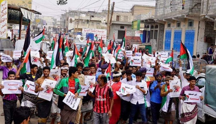 شبوة .. مسيرة تضامنية مع غزة وصمودها في مواجهة الاحتلال الإسرائيلي