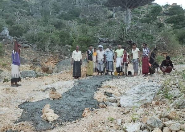وفي ظل غياب السلطة المحلية التابعة للانتقالي الموالي للإمارات في القيام بمهامها وتلمس احتياجات المواطنين ومعناتهم، نفذ أهالي مخيم درهر بمحافظة أرخبيل سقطرى مبادرة مجتمعية لترميم الطرق وردم الحفر الناتجة عن إعصار “تيج”.