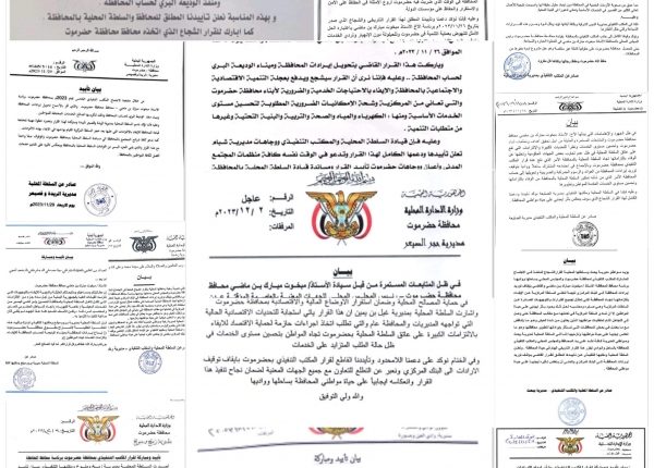 وأشاروا في بياناتهم إلى أن حصول محافظة حضرموت على حقوقها كاملة حق مشروع إسوة بغيرها من المحافظات، موضحين أن ذلك الإهمال واللامبالاة قد تسبب في قصور واضح في الخدمات الأساسية للمواطنين وتدهور في البنية التحتية.