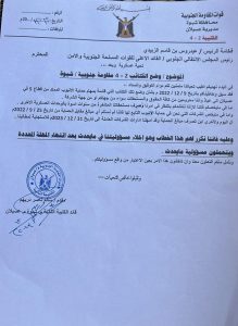 وكانت قيادة المقاومة الجنوبية المتهمة بتفجير الأنبوب، قد رفعت مذكرة تحدث فيها عن وضع الكتيبتين الثانية والرابعة المكلفتين من قيادة الانتقالي بمهام حماية الأنبوب الممتد من قطاع 5 جنة في عسيلان إلى عياذ.