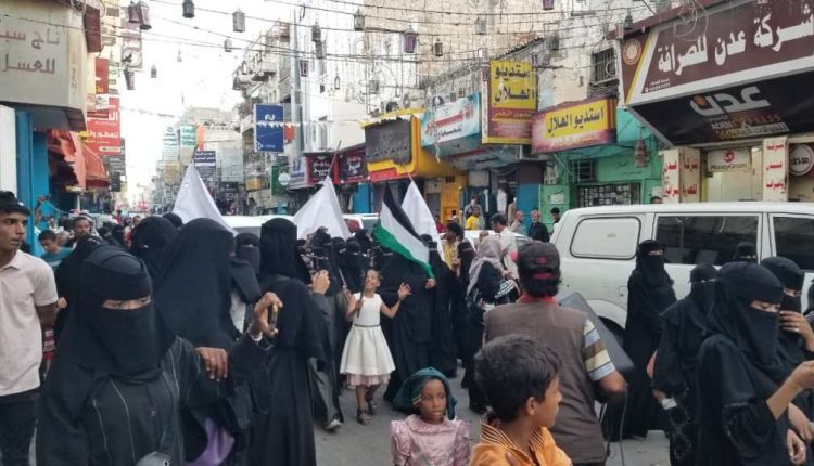 عدن .. مسيرة ثانية في كريتر ضد حكومة معين ومنددة بجرائم الاحتلال في غزة