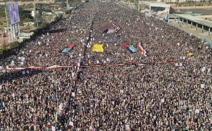 مسيرات مليونية في صنعاء والمحافظات اليمنية”ثابتون في الموق.. مع غزة حتى النصر”