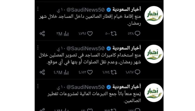 كما جدد إصدار قراراً سبق أن أصدره العام الماضي يقضي بـ”منع استخدام كاميرات المساجد في تصوير المصلين خلال شهر رمضان وعدم نقل الصلوات أو بثها في أي موقع”.