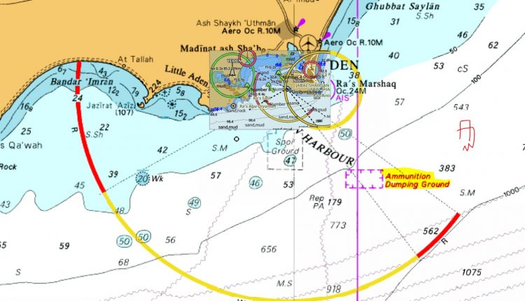 وقال الخبير الجيولوجي عبدالغني جغمان في منشور له على منصة “إكس”:” أنباء عن استخدام منطقة بحرية امام ميناء عدن بمسافة 14 ميل بحري بزاوية 320 درجة تستخدم كمنطقة للنفايات العسكرية والذخائر والمتفجرات والمواد الكيميائية الضارة”.