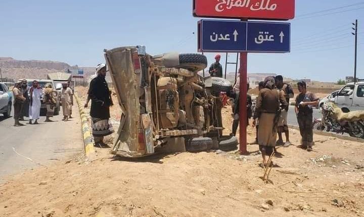 أصيب عدد من جنود قوات العمالقة الموالية للإمارات، اليوم الثلاثاء، بإصابات خطيرة جراء حادث مروري تعرضت له دوريتهم العسكرية في محافظة شبوة.
