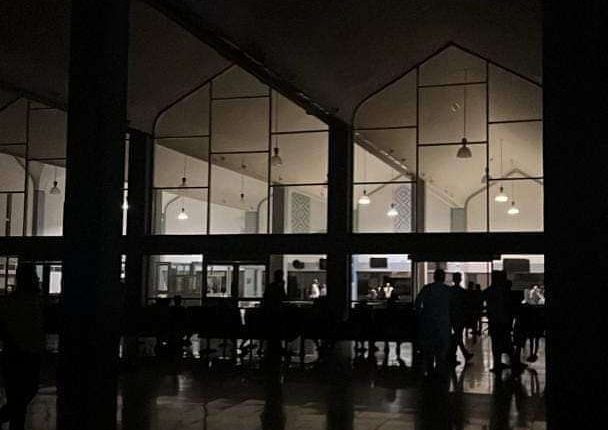 تداول ناشطون صورة لمطار عدن وهو يغرق بالظلام الدامس عقب خروج خدمة الكهرباء عن الخدمة ليل الأحد.