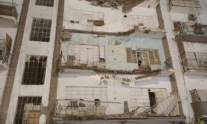 هلع يصيب السكان عقب انهيار مفاجئ لبلكونات عمارة سكنية بعدن