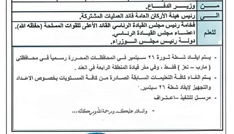 الانتقالي يُصدر تعميم يمنع الاحتفالات بذكرى 26سبتمبر في عدن