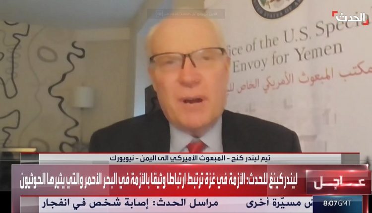 خلال حديثه لقناة “الحدث” السعودية، صرح المبعوث الأمريكي إلى اليمن، تيم ليندركينغ، بأن “هناك صلة بالتأكيد وارتباطًا وثيقًا بين هجمات الحوثيين في البحر الأحمر والحرب في غزة”. كما أشار إلى محاولات واشنطن لتشجيع الحوثيين على ضبط النفس، لكن تلك الجهود لم تؤتِ ثمارها.