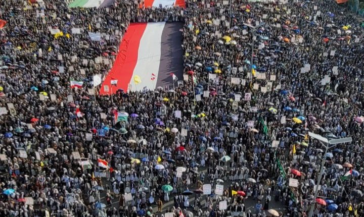 واكد المشاركون في المسيرات، على الجاهزية العالية والاستعداد لخوض معركة “الفتح الموعود والجهاد المقدس” اسناداً ودعماً للمقاومة الفلسطينية واللبنانية وردع العدو الصهيوني المجرم، ومواجهة أي تصعيد لقوى العدوان والاستكبار العالمي أمريكا وإسرائيل وبريطانيا.