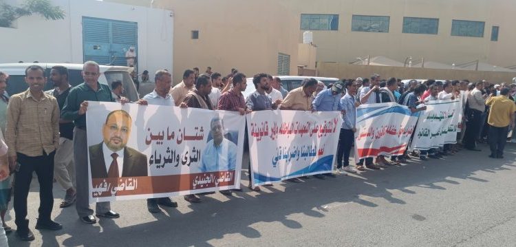 القضاة يحتجون في عدن ويبدأون الإضراب