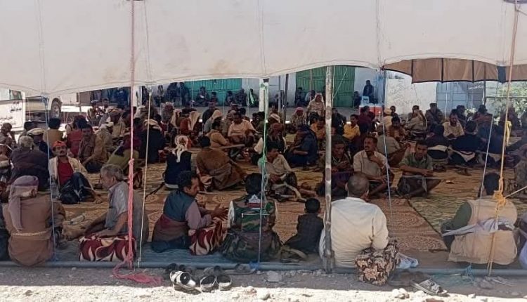 قبائل لقموشـ تجدد اعتصامها للمطالبة بالإفراج عن المخفيين في سجون الانتقالي