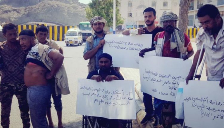 بعد ان تم اهمالهم وتركهم عرضة للموت ، دعا جرحى الحرب من المقاتلين في صفوف «المقاومة» والقوات الموالية للرئيس عبد ربه منصور هادي، إلى تنظيم وقفة احتجاجية أمام مقر قوات «التحالف العربي» في مدينة عدن.