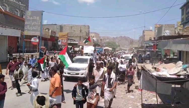 مسيرة جماهيرية حاشدة في مودية بأبين تضامناً مع غزة وتطالب بإعلان الجهاد(فيديو)