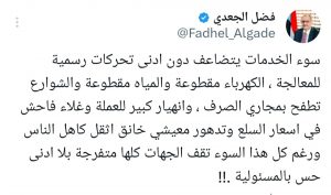 في مفارقة صادمة تكشف ازدواجية الخطاب السياسي، أطلق فضل الجعدي – أحد أبرز وجوه المجلس الانتقالي المدعوم إماراتياً – صرخة اعتراف نادرة بكوارث الجنوب، بينما تواصل مليشيات تابعة لتنظيمه قمع المحتجين العزل. عبر منشور على “إكس”، كشف الجعدي الانهيار الكارثي الذي تشهده عدن والمحافظات الجنوبية: انقطاع كهرباء يدفع المواطنين لحافة الجنون، شوارع تغرق في مياه الصرف الصحي، انهيار تاريخي للعملة، وموجات غلاء غير مسبوقة تحولت إلى مجاعة خفية تهدد آلاف الأسر.