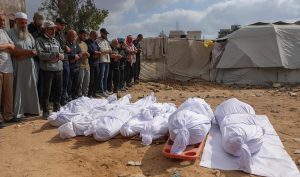 واستشهد 4 مواطنين وأصيب نحو 30، صباح اليوم، جراء استهداف الطائرات الحربية، خيام النازحين في مواصي خان يونس جنوب قطاع غزة.