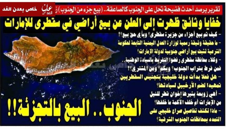ويأتي هذا في وقت انتشرت فيه أخبار خلال الفترة الماضية بمحاولة الإمارات السيطرة الكاملة على جزيرة سقطرى حيث أنشأت شبكة اتصالات إماراتية هناك وبدأت بمنح مواطنين محليين الجنسية الإماراتية كما أنها تدفع بسخاء للمواطنين مقابل تقديمهم تنازلات تتعلق بممتلكاتهم وضمان عدم إثارتهم للإجراءات الإماراتية التي تطال المحميات الطبيعية في الجزيرة حسب ما يتداوله ناشطون محليون في الجزيرة.