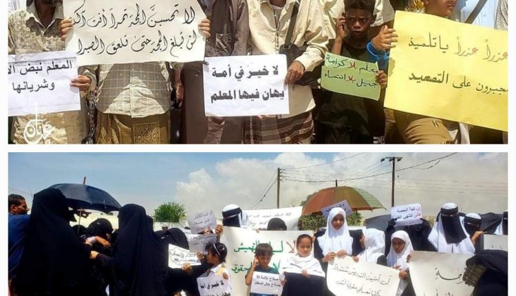 احتجاجات غاضبة للمعلمين بمديريات ساحل حضرموت
